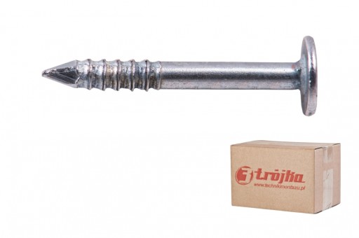Gwoździe Papowe Pierścieniowe Ocynkowane TRÓJKA wykonane są z twardego metalu trzpień zaostrzony z jednej strony, z drugiej zakończony płaskim powiększonym łbem. Gwóźdź służy do mocowania gontów bitumicznych pokryć dachowych, fasad z tworzyw sztucznych do konstrukcji drewnianych, płytek łupkowych. Połączenie jest utrzymywane dzięki siłom tarcia działającym wzdłuż osi gwoździa oraz dzięki sztywności trzpienia. Gwoździe wykonywane są ze stalowego drutu wysokiej jakości, a dzięki procesowi galwanizacji są odporne na warunki atmosferyczne.
