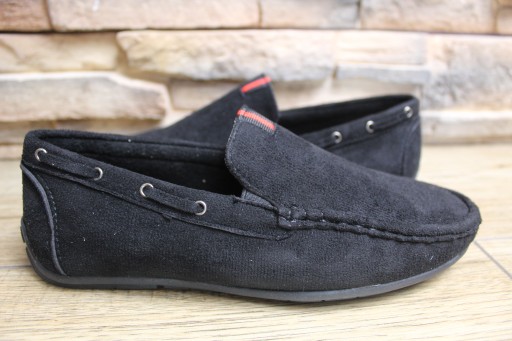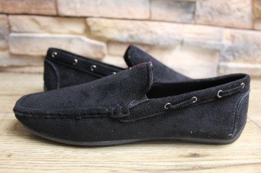Klasyczne mokasyny wizytowe w kolorze czarnym. Modne i bardzo wygodne. Wykonane z wysokogatunkowej skóry ekologicznej zamszowej. Pasujące na każdą szczególną okazję.