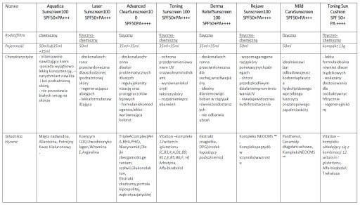 - Filtry chemiczne - chronią skórę przed szkodliwym działaniem promieniowania UV.
