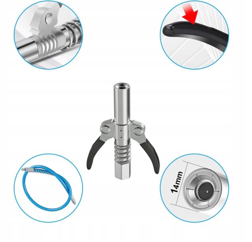 Najnowsza konstrukcja unikalnej konstrukcji antypoślizgowej gwintu, dzięki której nie będziesz łatwo zsuwać się podczas pracy, wygodniejsza w użyciu złączki Grease Gun Coupler.