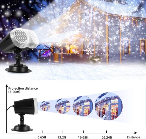 - Każdy płatek śniegu obraca się i skoczy tak, że poczujesz się jak w świecie bajek. Miękkie białe światła tworzą realistyczny śnieg. Idealnie nadaje się do użytku wewnątrz i na zewnątrz przez cały rok. Idealna, aby stworzyć wyjątkowy ekspozytor do ogrodu, na taras, imprezę, wesele i inne uroczystości,