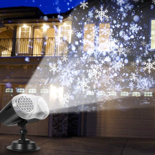 - Projektor LED w porównaniu z innymi lampkami projekcyjnymi jest mniejszy i lżejszy. Projektor ma większą powierzchnię pokrycia, zasięg projekcji wynosi od 5 do 10 m. Rozmiar lampy umożliwia oświetlenie całego ogrodu za pomocą jednej lampy projekcyjnej LED, jest on mocniejszy. Światła płatków śniegu można stosować na dowolnej ścianie lub płaskiej powierzchni wewnątrz lub na zewnątrz