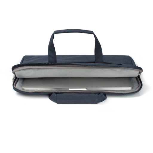 Etui wykonane jest z wytrzymałej i odpornej na ścieranie denimowej tkaniny, odpornej na wilgoć, dobrze chroni elektronikę przed uszkodzeniem. Podwójny zamek błyskawiczny umożliwia łatwe otwieranie i zamykanie. Etui, posiada dodatkową przednią kieszeń w której bez problemu schowasz telefon czy portfel oraz drobne akcesoria. Torba jest wyposażona w wygodne chowane rączki, pozwalające na jej przenoszenie. Dodatkowa rączka pozwoli na przypięcie do walizki z uchwytem teleskopowym dzięki czemu można ograniczyć liczbę noszonego bagażu. Do torby dołączony jest pasek na ramię z solidnymi klamrami. Wodoodporna tkanina, odporna na wstrząsy pianka, antystatyczne puszyste wnętrze, miękka wyściółka zmniejszają tarcie i dbają o twój laptop. Wnętrze pokrowca wyłożone jest grubą warstwą miękkiego materiału, który utrzymuje, a zarazem chroni urządzenie przed uszkodzeniem.
