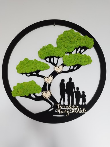 Drzewko życia z Rodziną przykuje uwagę każdego Twojego gościa. Dekoracje z mchem chrobotkiem w ostatnim czasem królują w trendach dekoracyjnych. To spektakularna ozdoba wnętrza bądź niebanalny pomysłem na prezent. Dodatkowo forma Rodziny na obrazie wprowadzi atmosferę spokoju, ciepła i harmonii
