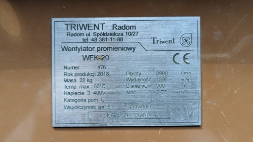 Sprzedam nowy wentylator promieniowy polskiego producenta Triwent WFK-20. Oryginalny silnik Siemens. Kupiłem go kilka lat temu z myślą, że przyda się do kolejnego ceklonu pod CNC.