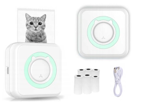 | MINI | DRUKARKA | PRZENOŚNA | TERMICZNA | DO ZDJĘĆ | WYSOKA JAKOŚĆ | 6 ROLEK PAPIERU | APLIKACJA | 1000 mAh | USB |