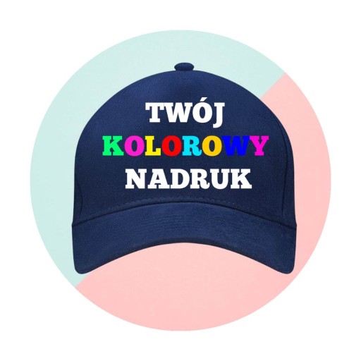 ✅ Nadruk : Wielokolorowy RGB, CMYK wraz z kolorem białym na fornocie czapeczki ( jak na przykladzie )