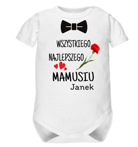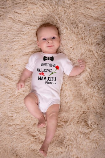 Urocze body z napisem, nadrukiem "WSZYSTKIEGO NAJLEPSZEGO MAMUSIU" i dowolnym imieniem dziecka.