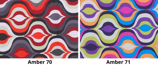 Tkanina AMBER posiada wielokolorowe wzory, ogranicza wchłanianie płynów, miła w dotyku.