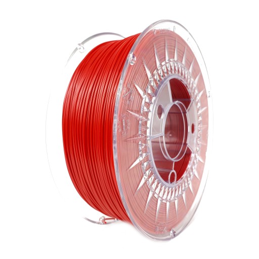Wysokiej jakości filament do drukarek 3D, wyprodukowany w Polsce przez Devil Design. 1 kg filamentu PET-G o średnicy 1.75mm nawinięty na szpuli. Kolor: Red / Czerwony
