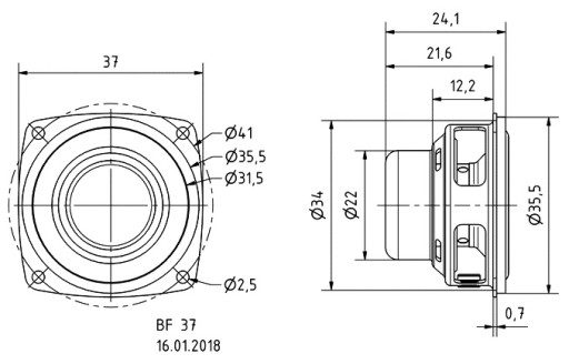 ПОЛНОполосный динамик VISATON BF37 4 Ом, 8 Вт, 37 мм