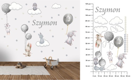 Наклейки на стену кролики воздушные шары имя 60X120