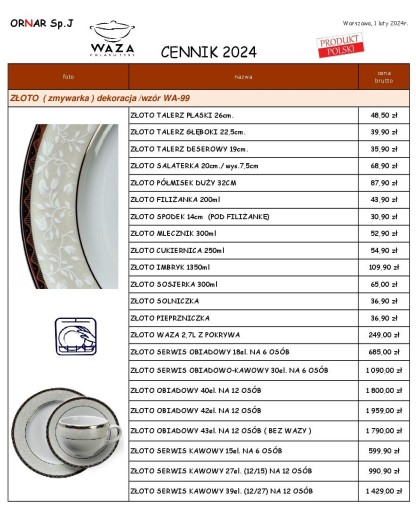 Zestaw jest fabrycznie nowy i został wyprodukowany w Polsce w I gatunku przez Waza Przygodzice.