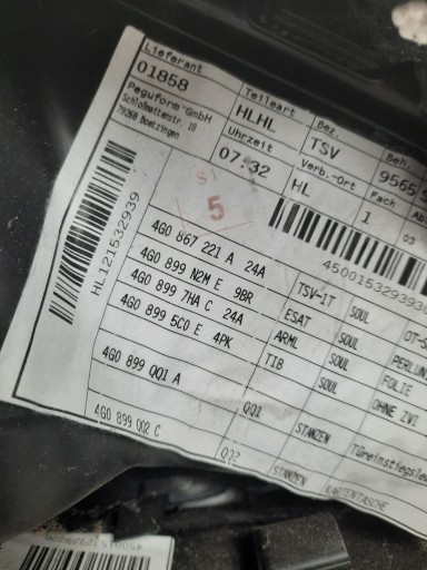 Tapicerka boczek drzwi tył lewy Audi A6 MATERIAŁ podświetlenie klamki, BRAK KRATKI GŁOŚNIKA ZE ZDJĘCIA