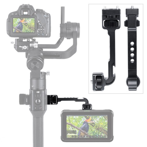 Uchwyt pozwala na zamocowanie dodatkowych akcesoriów przy gimbalu, w tym w szczególności monitora podglądowego.