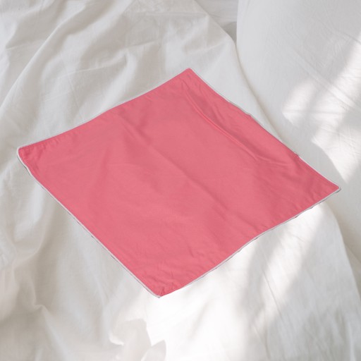 Materiał poszycia zostało wykonane w 100% z gęsto utkanej bawełny. Jest to materiał o bardzo gęstym splocie, dodatkowo woskowany od wewnątrz, co zabezpiecza przed wychodzeniem wypełnienia na zewnątrz. Każdy produkt wykończony jest białą bawełnianą lamówką, która ozdabia wyrób oraz dodatkowo uszczelnia jej brzegi.