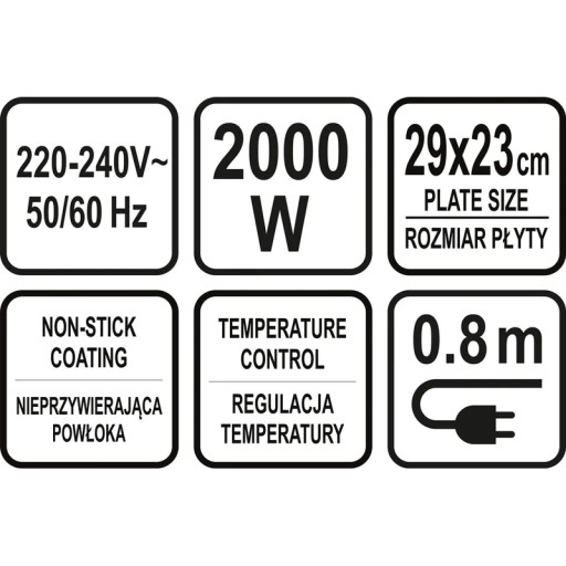 - Moc: 2000W, 220-240V, 50/60Hz