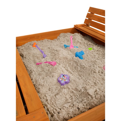 Budowanie zamków z piasku, stawianie „babek”, czy też kopanie dołów łopatką to niezapomniana przygoda dla każdego dziecka. Dużą zaletą naszej piaskownicy jest możliwość składania ławeczek z których tworzymy pokrywę przykrywając tym samym piaskownicę.