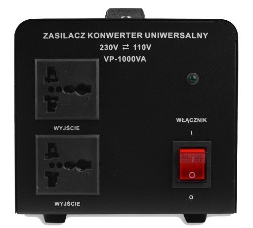 Uniwersalny konwerter napięcia VP 1000 230/110V służy do obniżania napięcia zmiennego AC-230V do napięcia zmiennego AC-110V lub do podwyższania napięcia zmiennego AC-110V do napięcia zmiennego AC-230V. Wyjątkowo przydatny w sytuacji kiedy chcemy zasilić sprzęt pochodzący z USA, Japonii.