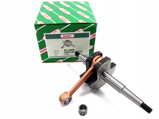 Wał korobowy do motorowerów Romet, Motorynka z silnikiem kwadratowym dwubiegowym. Do wału dołączone jest łożysko igiełkowe na sworzeń tłokowy. Najlepszy jakościowo wał dostępny na rynku. Producent Duells.