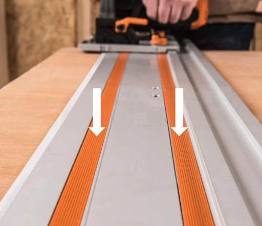 Wymienne taśmy ślizgowe o niskim współczynniku tarcia i prowadnica krawędziowa zapewniają, że piła tarczowa ślizga się płynnie po prowadnicy, pozostawiając za każdym razem czyste cięcie.