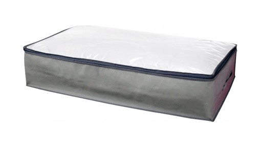 Pojemnik do przechowywania ma wymiary 100 x 50 x 15 cm i pojemność 75 litrów. Idealnie sprawdzają się do przechowywania odzieży, pościeli, kołder, poduszek, koców, butów, zabawek i innych przedmiotów. Organizery pasują pod łóżko. Można je umieścić również na szafie, na strychu lub w suchej piwnicy.
