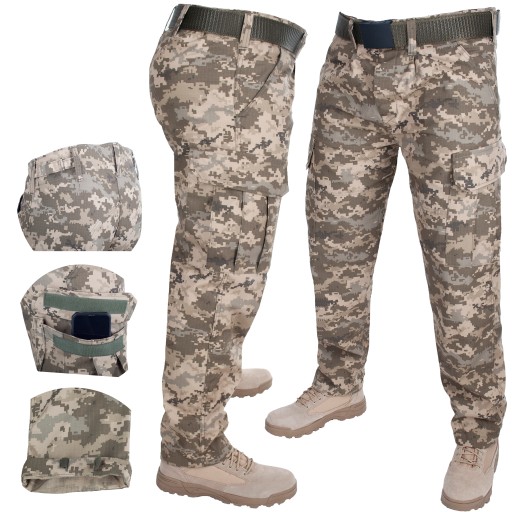 Spodnie wykonane są z tkaniny z technologią Rip-Stop. Jest to technika wzmacniania tkaniny poprzez dodanie w stałych odstępach dodatkowego, mocniejszego włókna. Charakteryzuje się niesamowicie wysoką wytrzymałością na rozdzieranie i ścieranie. Cechy te zawdzięcza specjalnej siatkowanej fakturze.