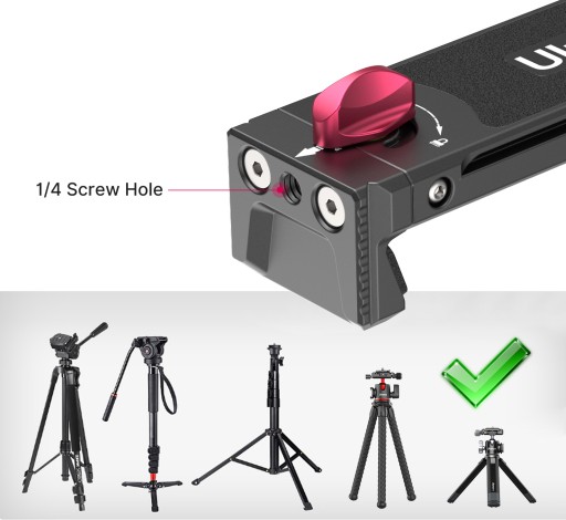 - 1 x gwint 1/4" znajdujący się na spodzie uchwytu, umożliwia montaż na statywie / sliderze / monopodzie, itp.