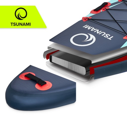 Deska SUP TSUNAMI została wykonana z dwuwarstwowego materiału DWF, który został wzmocniony wewnątrz tysiącami włókien Dropstitch. Dzięki temu charakteryzuje się ona zwiększoną odpornością na wahania temperatur oraz na uszkodzenia – nie musisz obawiać się, że pęknie, gdy niespodziewanie wpłyniesz na jakąś przeszkodę. Co więcej, wydłużenie deski aż do 320 cm ułatwia wiosłowanie, a także ogranicza efekt „uciekania dzioba”. To wszystko sprawia, że deska SUP TSUNAMI to idealny wybór również dla osób, które jeszcze nigdy nie wiosłowały na stojąco.