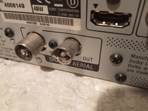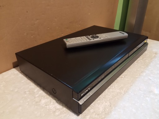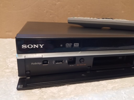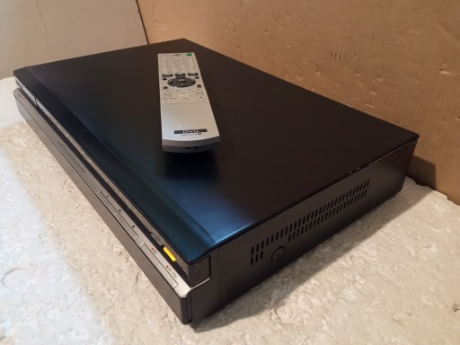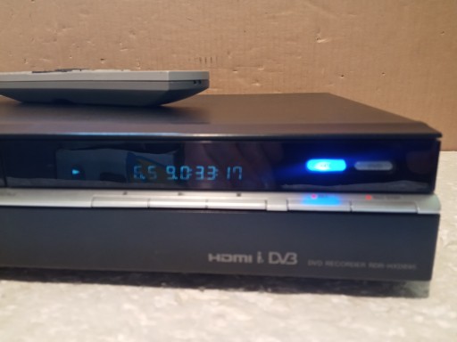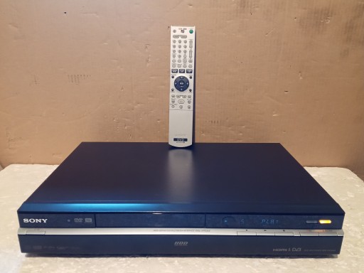 Nagrywarka DVD z dyskiem 160Gb marki SONY , model: RDR-HXD895 z pilotem . Urządzenie odczytuje płyty CD(też nagrywane ) , DVD(też nagrywane) oraz DIVX . Z dysku można odtwarzać aktualnie nagrany materiał . Trochę luzny i zniekształcony jeden "kominek" sygnałowy z tyłu widoczne na zdjęciu !