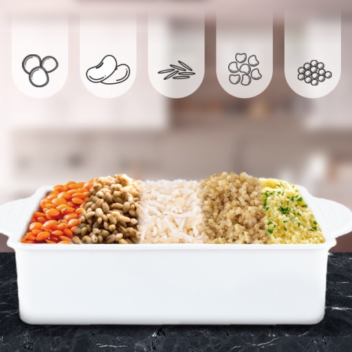 - Na najniższym poziomie przygotujesz ziemniaki lub mięso czy ryby. Środkowy poziom jest idealny dla warzyw, a na najwyższym poziomie możesz ugotować ryż. Jeżeli przygotowujesz mniejszy posiłek równie dobrze możesz użyć jednego pojemnika. Parowar ma łącznie 10,6 l pojemności, dzięki czemu będziesz mógł wykonać obiad dla całej rodziny. Oszczędzasz zarówno zwój czas jak i energię elektryczną – nie musisz używać kilku palników, aby przygotować jeden obiad.
