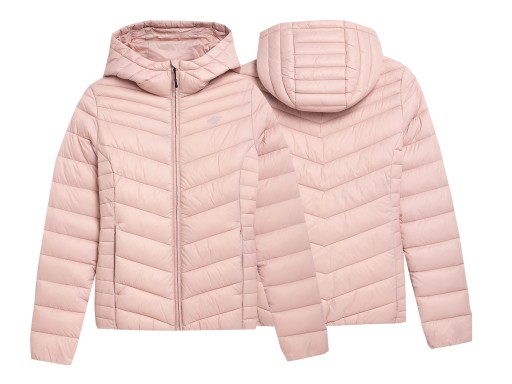 Damska kurtka puchowa z kapturem z najnowszej kolekcji 4F. Wypełniona puchem syntetycznym, który zapewni komfort cieplny. W materiale zewnętrznym zastosowano hydrofobową impregnację, która ochroni kurtkę przed wilgocią. Kurtka zapewni optymalną ochronę przed chłodem w okresie przejściowym.