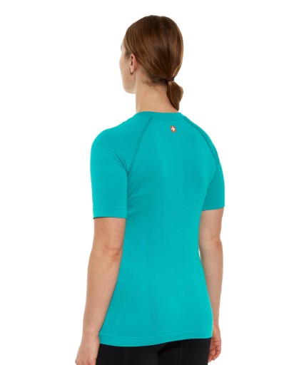 Ten niezawodny t-shirt wykonany jest z dzianiny o wyjątkowej, dwuwarstwowej strukturze, zapewni to skuteczne odprowadzanie wilgoci z powierzchni skóry, nawet podczas intensywnego wysiłku. Utrzymanie optymalnej temperatury ciała wspomagane jest dodatkowo przez specjalnie zaprojektowanymi strefami wentylacyjnymi w miejscach o wzmożonej potliwości.