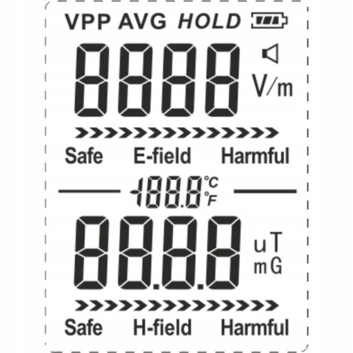 - Zakres: 1V/m-1999V/m (pole elektryczne) / 0.01μT-99.99μT (pole magnetyczne)