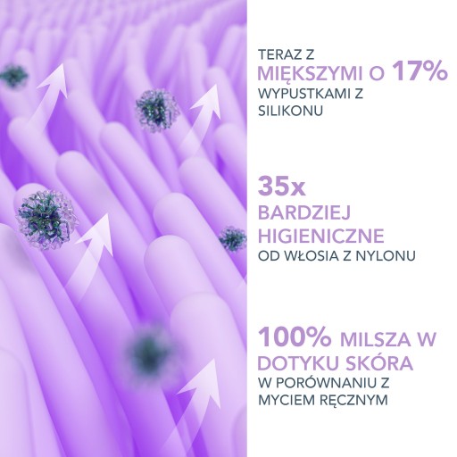 • Wykonana z czystego dla skóry, 35-krotnie wyższego higienicznego od nylonu silikonu, bez ftalanów i BPA