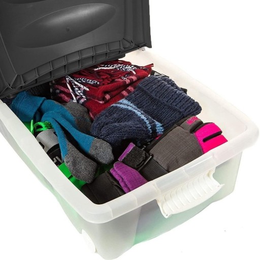 Pudełko sprawdzi się jako dodatkowe miejsce do przechowywania np pod łóżkiem, zamontowane kółka ułatwiają przesuwanie pojemnika w dowolne miejsce. Pojemniki doskonale sprawdzą się do przechowywania pościeli, sezonowych ubrań ale także w pokoju dziecięcym jako organizer na klocki i inne zabawki.