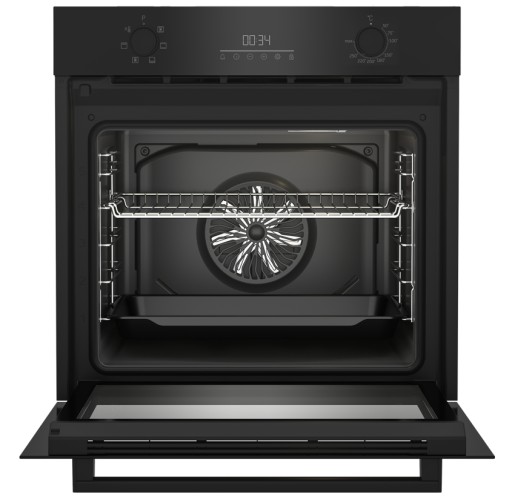 Piekarnik elektryczny w kolorze czarnym o pojemności 72l, 6 funkcjami, czyszczeniem parowym, wyświetlaczem LED, blokadą rodzicielska.