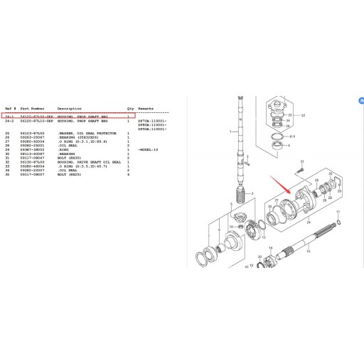 Dla silnika zaburtowego Suzuki 90HP DF 90ATX2 począwszy od VIN #09003F-710001 skrzynia biegów (DF90A E03)