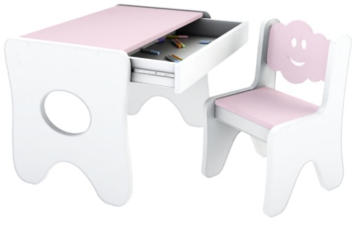 Stolik i krzesełko dla dziecka – oryginalny styl w dziecięcym wnętrzu. Meble dla dzieci zaprojektowane z myślą o bezpieczeństwie, wygodzie i prawidłowym rozwoju najmłodszych. Odpowiednio dobrane krzesełko ze stolikiem to świetny sposób na wykreowanie miejsca, które stanie się bezpieczną przestrzenią dla dzieci. Stolik i krzesełko dla dziecka to fundament zabawy, który uwolni wyobraźnię, tworząc idealne warunki do rozwoju każdego małego artysty. Mebelki wykonane są z certyfikowanych materiałów, wysokiej jakości płyty meblowej laminowanej, wszystkie narożniki są zaokrąglone by użytkowanie mebelków było bezpieczne dla naszych pociech, zaletą jest nowoczesna i bardzo stabilna konstrukcja oraz szuflada pod stolikiem gdzie dziecko może w każdej chwili coś schować albo coś wyjąć by móc bez ograniczeń kreować swoją zabawę.W zależności od potrzeb, stół sprawdzi się do nauki, malowania, zabawy czy spożywania posiłków.