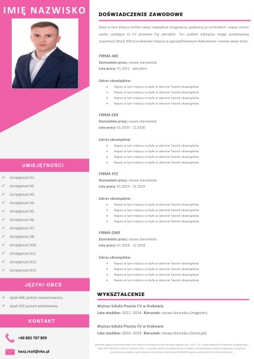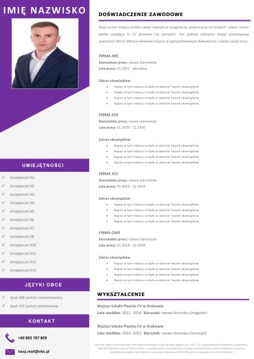 Szablon jest edytowalny w MS Word i iWork Pages, w łatwy sposób edytujesz dowolne elementy min. treści, zdjęcie.