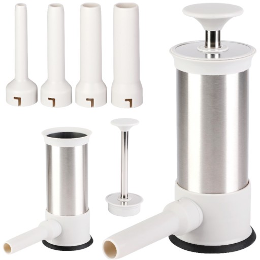 ⬛ UWAGA! Przed każdym użyciem rekomendujemy aby nadziewarkę dokładnie umyć i rozprowadzić łyżeczkę oleju jadalnego na jej wewnętrznej powierzchni. Jest to konieczne, by zapewnić właściwą pracę tłoka i WYDŁUŻYĆ ŻYWOTNOŚĆ URZĄDZENIA.