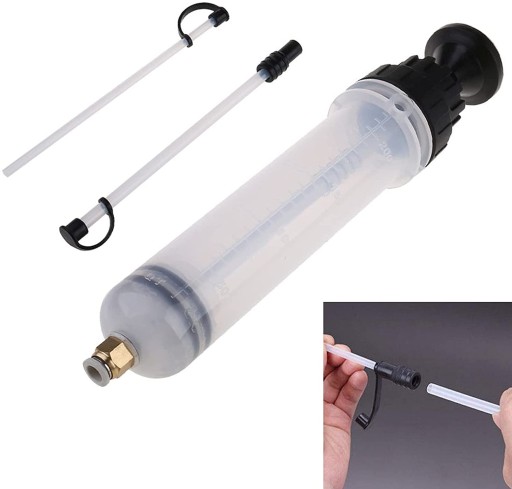 - W zestawie 2x wężyk z zatyczką do zatrzymania płynu wewnątrz odsysarki