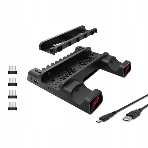 Zorganizowanie akcesoriów: Pakiet zawiera 1x podstawkę chłodzącą, 1x kabel ładujący, 4x głowicę konwersyjną micro-USB i 1x instrukcję