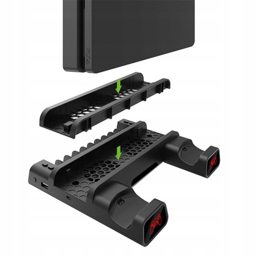 Wielofunkcyjna konstrukcja dla konsoli PS4/PS4 Slim/PS4 Pro: chłodzenie i przechowywanie konsoli PS4, z podwójną stacją ładującą kontrolera i 10 gniazdami do gier