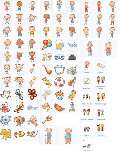 Możesz dodać dodatkowe dzieci, grafiki oraz zwierzęta dzięki klipartom.