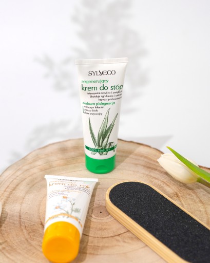 Naturalny, regenerujący krem do stóp, zawierający tylko naturalne składniki, przeznaczony jest do codziennej pielęgnacji suchej i zniszczonej skóry. Intensywnie i głęboko nawilża, natłuszcza i zmiękcza zrogowaciały, popękany naskórek. W skład kremu wchodzą roślinne ekstrakty aloesu oraz brzozy, które łagodzą podrażnienia, a olejek rozmarynowy działa kojąco i odświeża skórę.