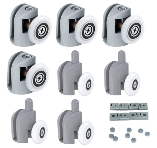 - Komplet 8 solidnych rolek pojedynczych do kabiny prysznicowej.