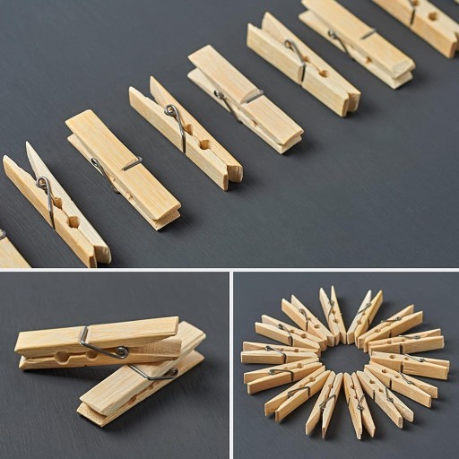 NATURALNY BAMBUS – do produkcji klamerek użyto naturalnego bambusa, dzięki czemu są one bardziej trwałe i można cieszyć się nimi dłużej niż ich plastikowymi odpowiednikami, które podlegają procesowi utleniania i łamią się.