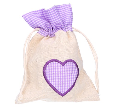 WORECZEK JUTOWY DEKORACYJNY Z FIOLETOWYM SERCEM