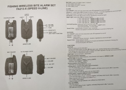 Funkcja antykradzieżowa!!! po uruchomieniu funkcji atykradzieżowej w przypadku podniesienia wędki umieszczonej na sygnalizatorze generowany jest przez 5 sekund alarm dżwiekowy oraz optyczny na sygnalizatorze oraz w centralce.